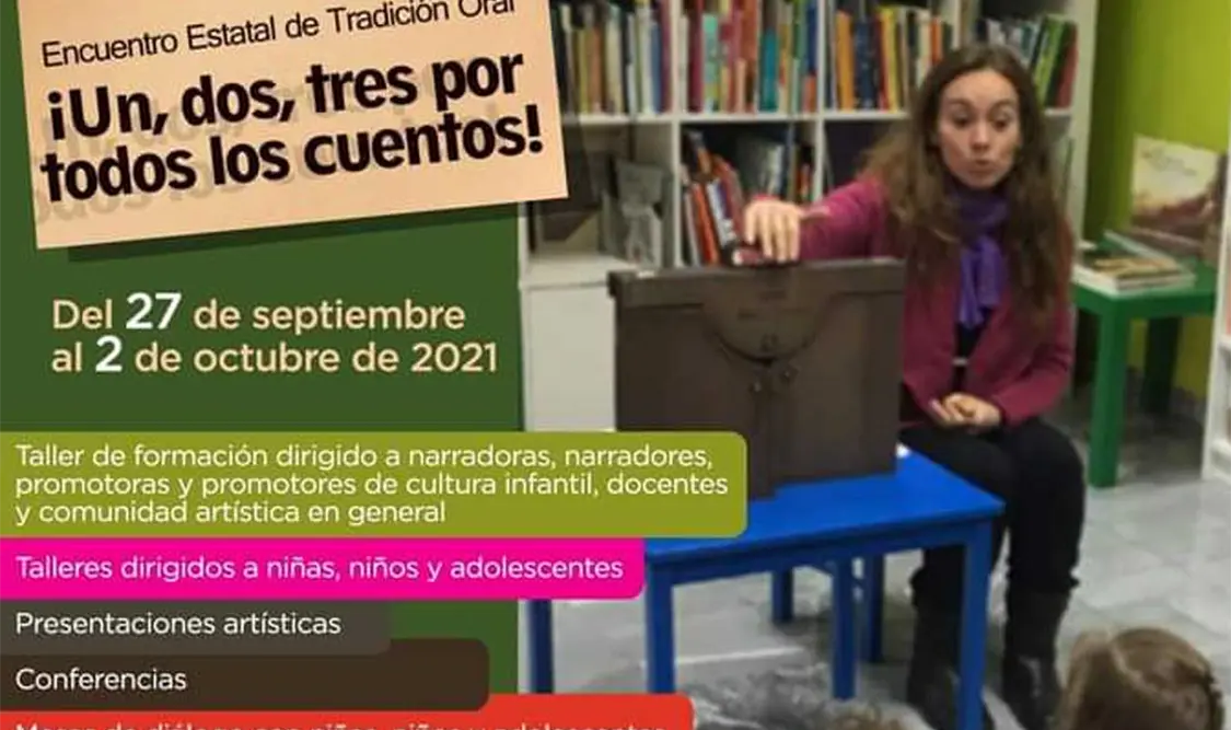 El Encuentro Estatal de Tradición Oral ¡Un, Dos, Tres por Todos los Cuentos!, que se llevará a cabo del 27 de septiembre al 2 de octubre del presente año, dio a conocer su cartelera de actividades virtuales.