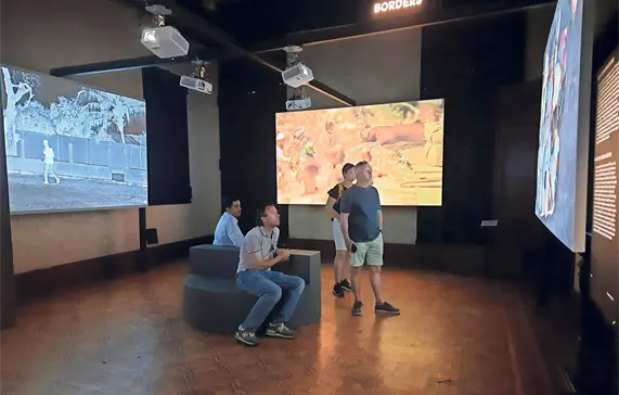En el suelo se marcaron las delimitaciones del terreno y en el video se observa cómo la gente es tratada con violencia y se le confiscan sus pertenencias. Otro ejemplo es Ghost hunting, un documental del cineasta palestino Raed Andoni, quien trata de recrear junto a otros exconvictos la oscura prisión israelí donde fueron encerrados, a través de sus confusas descripciones —tenían los ojos vendados—, como un método para conciliar el trauma. Estos son algunos de los fantasmas que se abordan en la exhibición, temas que rara vez encuentran las vías de salida para ser conversados en público. “El cine no solo es espejo de cambios políticos, participa en ellos, los anticipa, acompaña, apoya y los transforma desde un acercamiento estético retador”, dice Orléan.