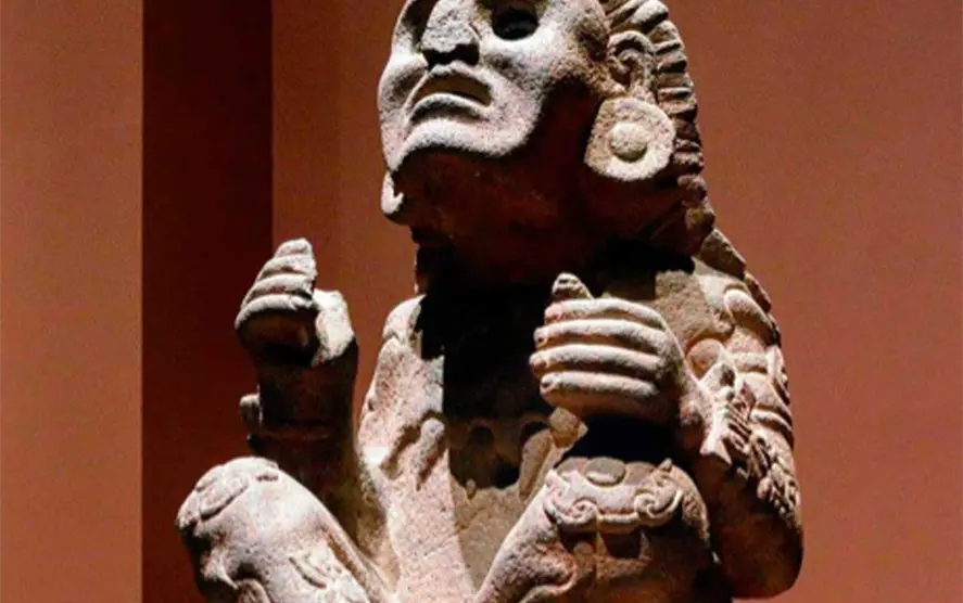 Detrás del monolito del dios Xochipilli-Macuilxóchitl representado en una pieza en mármol jaspeado de poco más de 36 cm de alto, 9.14 cm de ancho, 9.19 cm de profundidad y 5 kg aproximadamente de peso que se exhibe en el Museo del Templo Mayor dentro de la exposición “El hallazgo de Xochipilli en el antiguo barrio de Santa María, Cuepopan”, hay una historia en la que trabajan los expertos desde el 17 de julio de 2019 cuando fue hallada en la esquina que hacen las calles de Violeta y Galeana, en la colonia Guerrero.