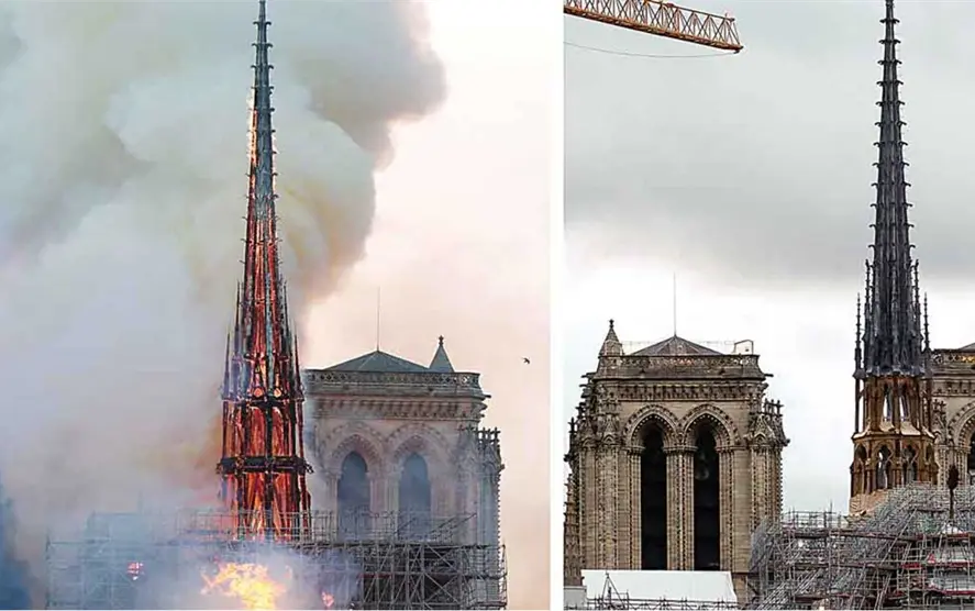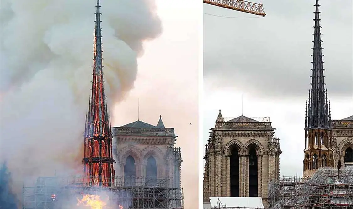 La tarde del 15 de abril de 2019, el tejado de la catedral fue consumido por las llamas, que rápidamente engulleron la aguja y casi derribaron los campanarios principales. En todo el mundo, los telespectadores vieron con horror cómo ardía el edificio medieval.