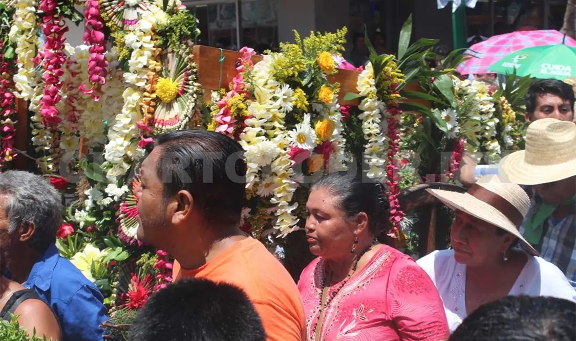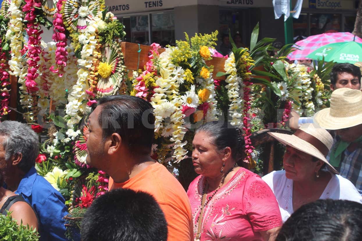 Al frente de todo el cortejo iban mujeres con vestidos de chiapanecas, seguidas de los parachicos, que bailaron al son del carrizo y el tambor, para continuar con los padres de esa iglesia, posteriormente la carreta y luego los cientos de fieles.
