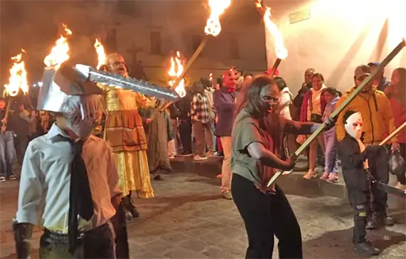 Las calles de Pátzcuaro, el pueblo mágico michoacano en cuyo lago se dice que hay aparecidos, estaban alumbradas con fogatas que otros monstruos cargaban a paso lento. Estaba un diablo, una calavera andante, lo que en vida fue un pirata y un bebé gigante con las venas traslúcidas en la cabeza pálida. Pero también un vampiro y hasta un fantasma clásico de caricatura, es decir, manta blanca y cuencas de ojos en negro.