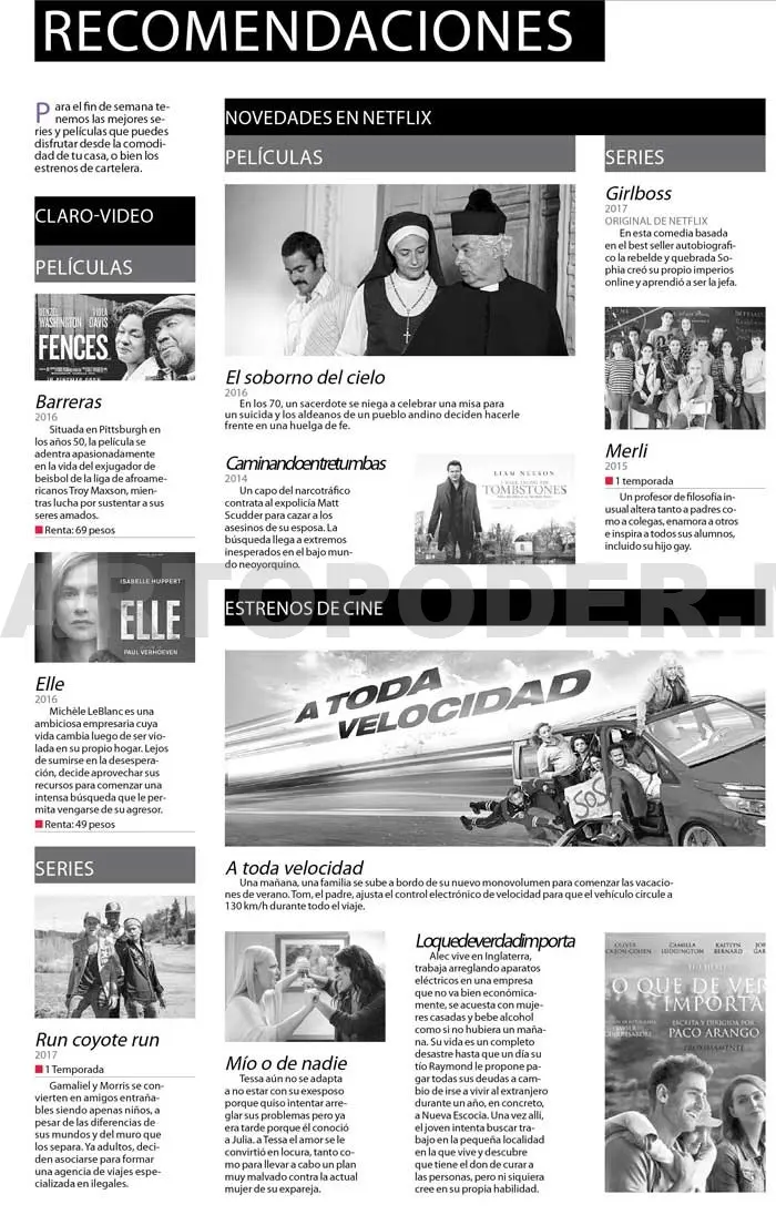 Para el fin de semana tenemos las mejores series y películas que puedes disfrutar desde la comodidad de tu casa, o bien los estrenos de cartelera.