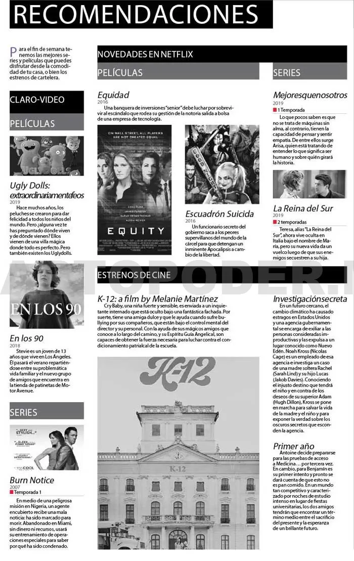 Para el fin de semana tenemos las mejores series y películas que puedes disfrutar desde la comodidad de tu casa, o bien los estrenos de cartelera.