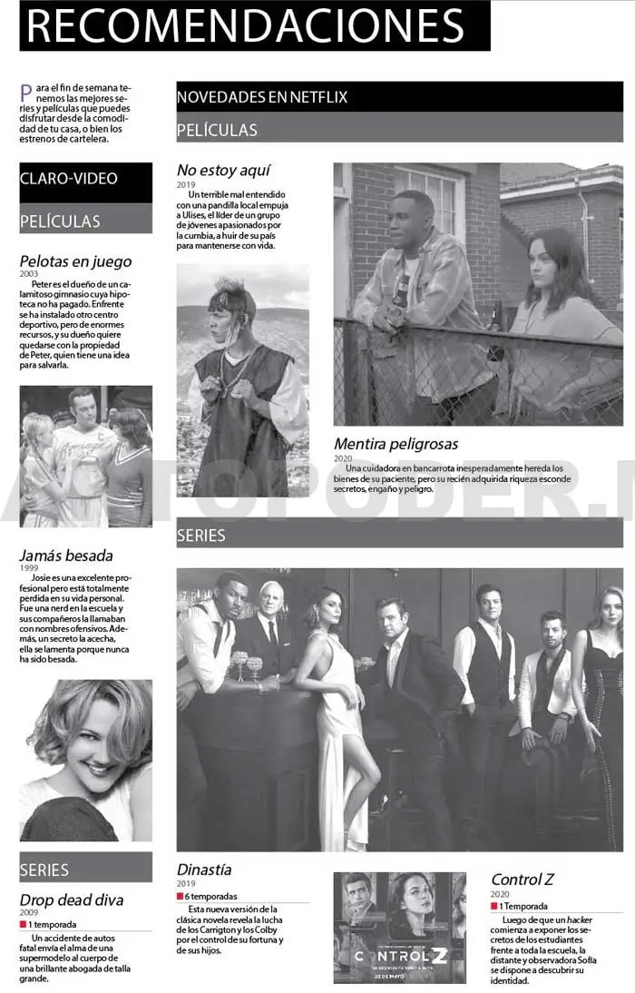Para el fin de semana tenemos las mejores series y películas que puedes disfrutar desde la comodidad de tu casa, o bien los estrenos de cartelera.