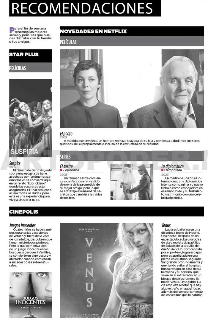 Para el fin de semana tenemos las mejores series y películas que puedes disfrutar con tu familia o tus amigos.