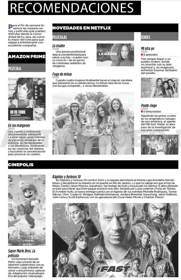Para el fin de semana tenemos las mejores series y películas que puedes disfrutar desde la comodidad de tu casa, así como lo mejor del cine para que salgas a entretenerte con excelente compañía.
