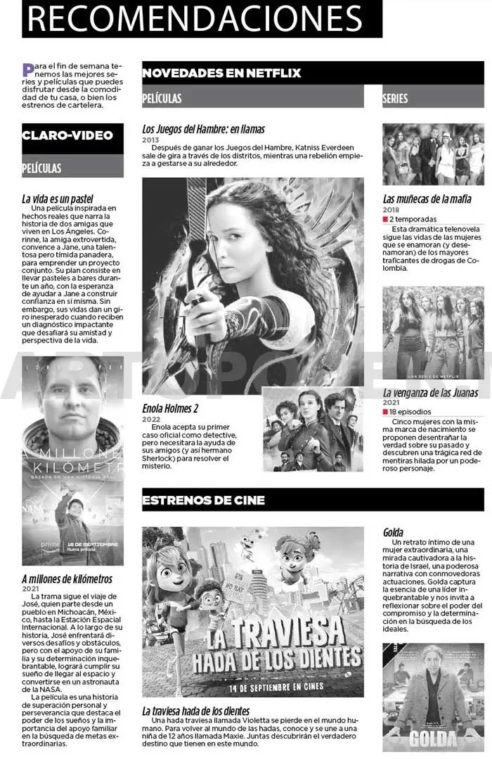 Para el fin de semana tenemos las mejores series y películas que puedes disfrutar desde la comodidad de tu casa, o bien los estrenos de cartelera.