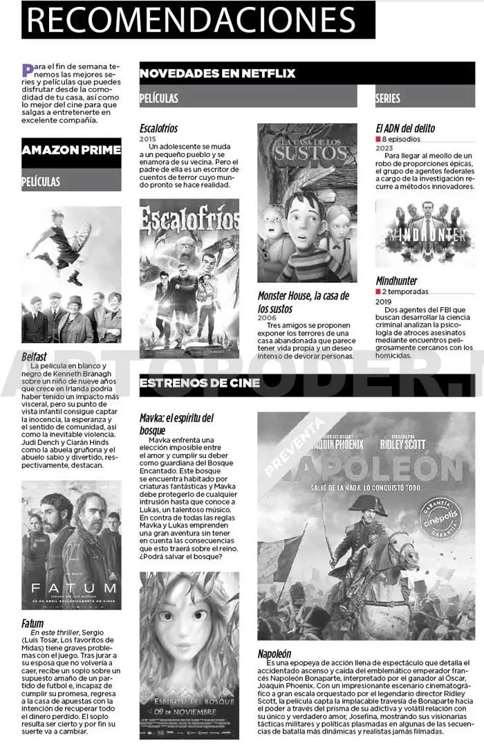 Para el fin de semana tenemos las mejores series y películas que puedes disfrutar desde la comodidad de tu casa, así como lo mejor del cine para que salgas a entretenerte en excelente compañía.