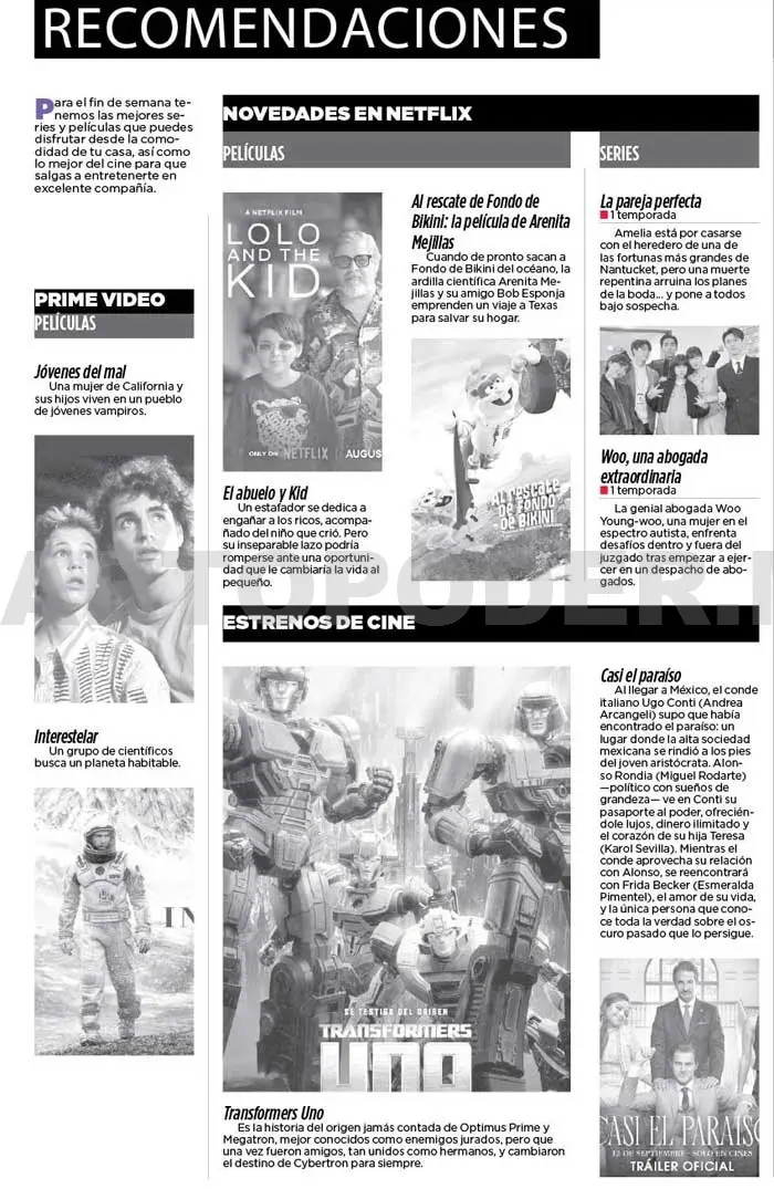 Para el fin de semana tenemos las mejores series y películas que puedes disfrutar desde la comodidad de tu casa, así como lo mejor del cine para que salgas a entretenerte en excelente compañía.