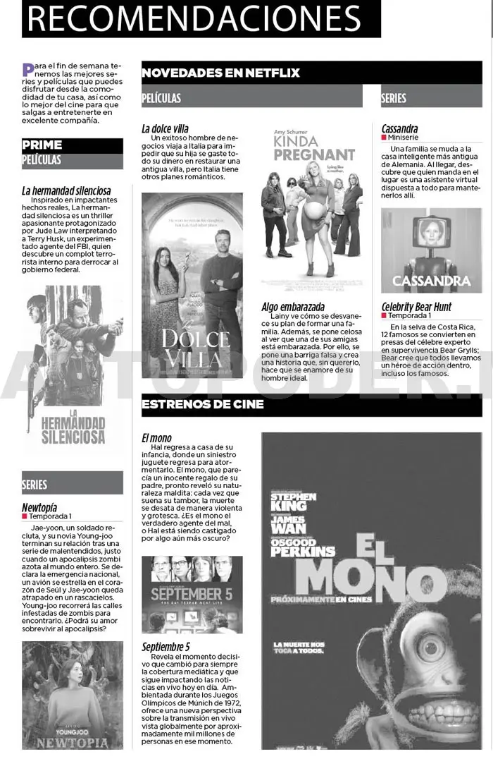 Para el fin de semana tenemos las mejores series y películas que puedes disfrutar desde la comodidad de tu casa, así como lo mejor del cine para que salgas a entretenerte en excelente compañía.