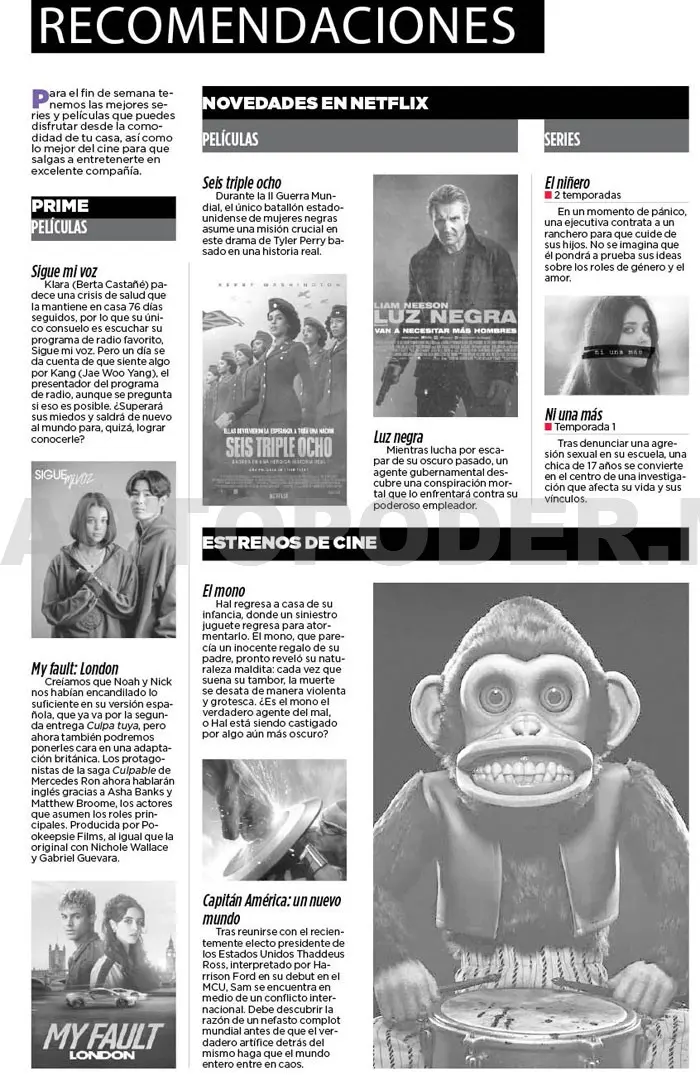Para el fin de semana tenemos las mejores series y películas que puedes disfrutar desde la comodidad de tu casa, así como lo mejor del cine para que salgas a entretenerte en excelente compañía.