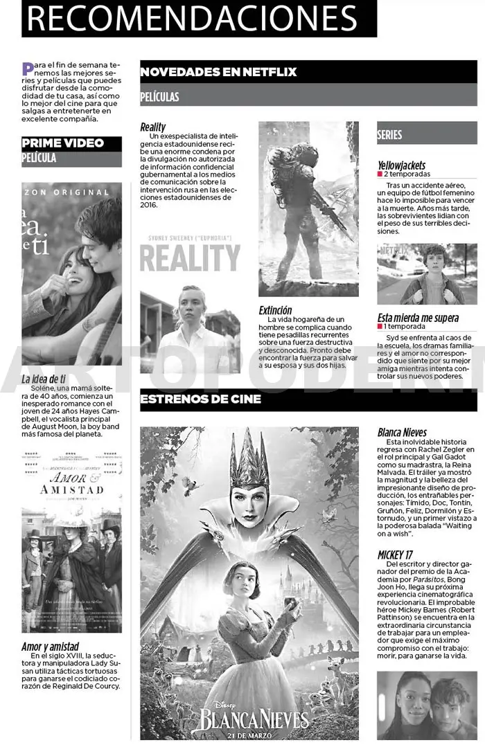 Para el fin de semana tenemos las mejores series y películas que puedes disfrutar desde la comodidad de tu casa, así como lo mejor del cine para que salgas a entretenerte en excelente compañía.