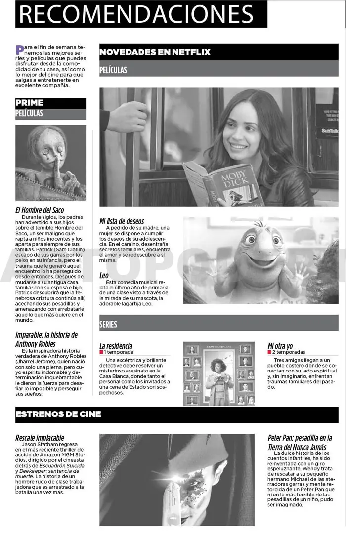 Para el fin de semana tenemos las mejores series y películas que puedes disfrutar desde la comodidad de tu casa, así como lo mejor del cine para que salgas a entretenerte en excelente compañía.