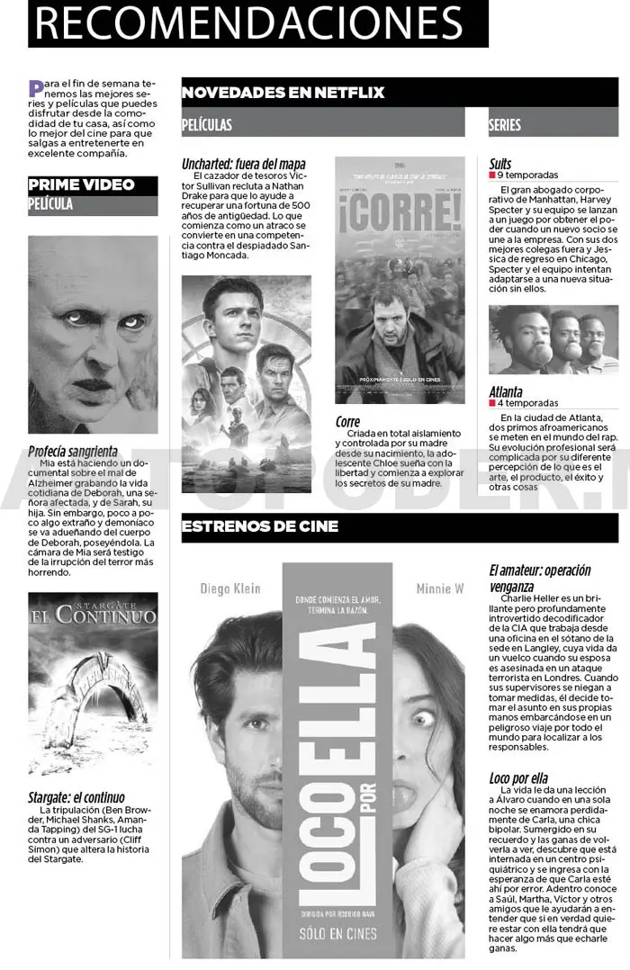 Para el fin de semana tenemos las mejores series y películas que puedes disfrutar desde la comodidad de tu casa, así como lo mejor del cine para que salgas a entretenerte en excelente compañía.