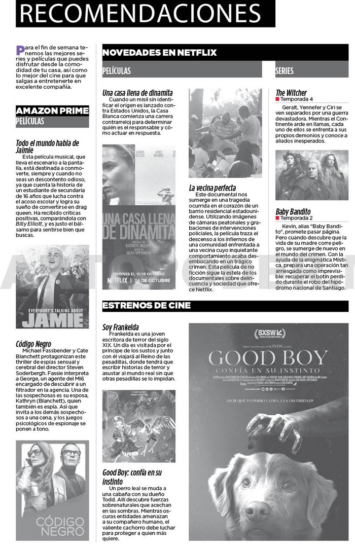 Para el fin de semana tenemos las mejores series y películas que puedes disfrutar desde la comodidad de tu casa, así como lo mejor del cine para que salgas a entretenerte en excelente compañía.