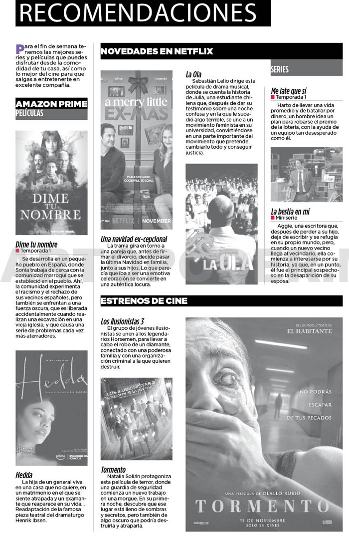 Para el fin de semana tenemos las mejores series y películas que puedes disfrutar desde la comodidad de tu casa, así como lo mejor del cine para que salgas a entretenerte en excelente compañía.