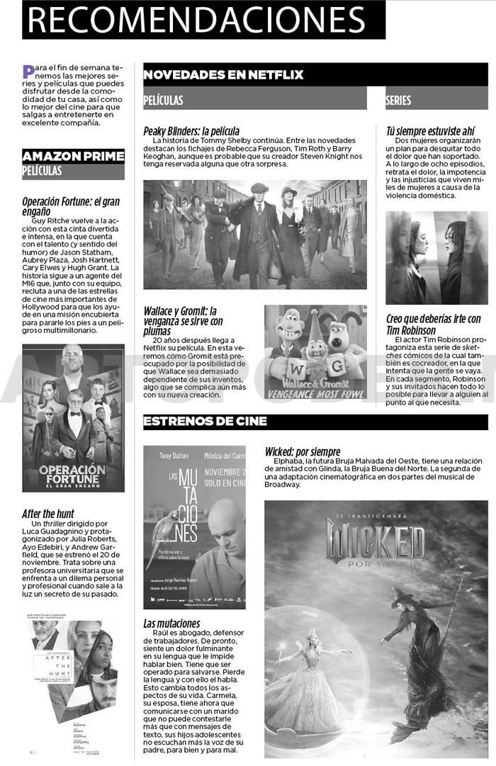 Para el fin de semana tenemos las mejores series y películas que puedes disfrutar desde la comodidad de tu casa, así como lo mejor del cine para que salgas a entretenerte en excelente compañía.