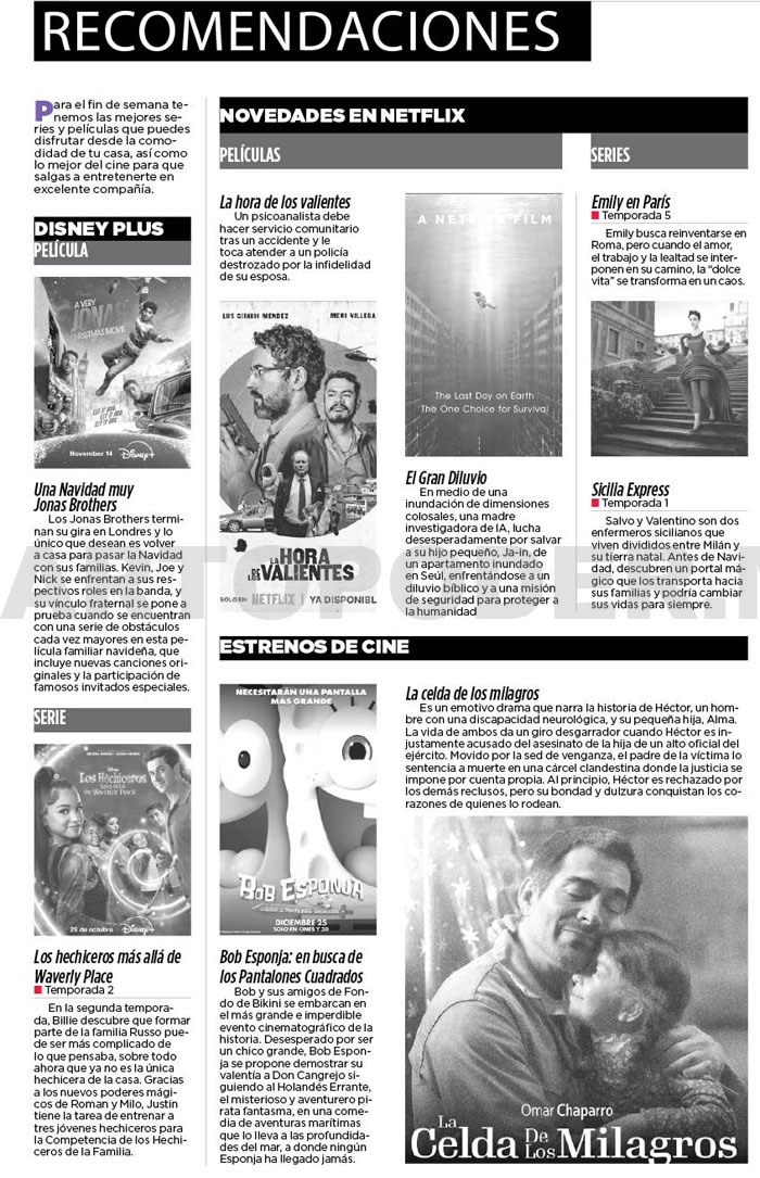 Para el fin de semana tenemos las mejores series y películas que puedes disfrutar desde la comodidad de tu casa, así como lo mejor del cine para que salgas a entretenerte en excelente compañía.