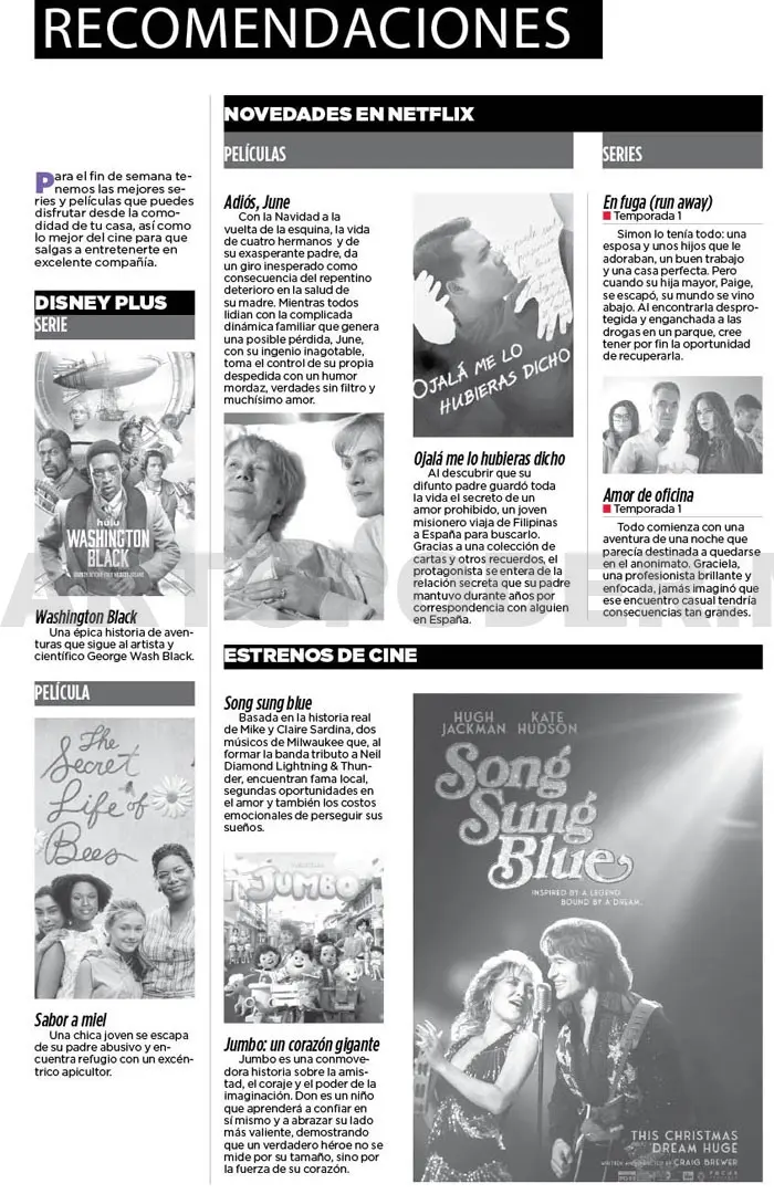 Para el fin de semana tenemos las mejores series y películas que puedes disfrutar desde la comodidad de tu casa, así como lo mejor del cine para que salgas a entretenerte en excelente compañía.