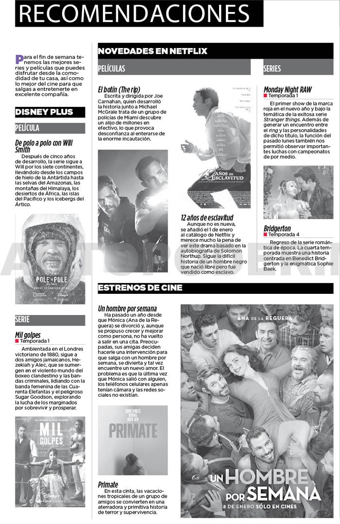 Para el fin de semana tenemos las mejores series y películas que puedes disfrutar desde la comodidad de tu casa, así como lo mejor del cine para que salgas a entretenerte en excelente compañía.
