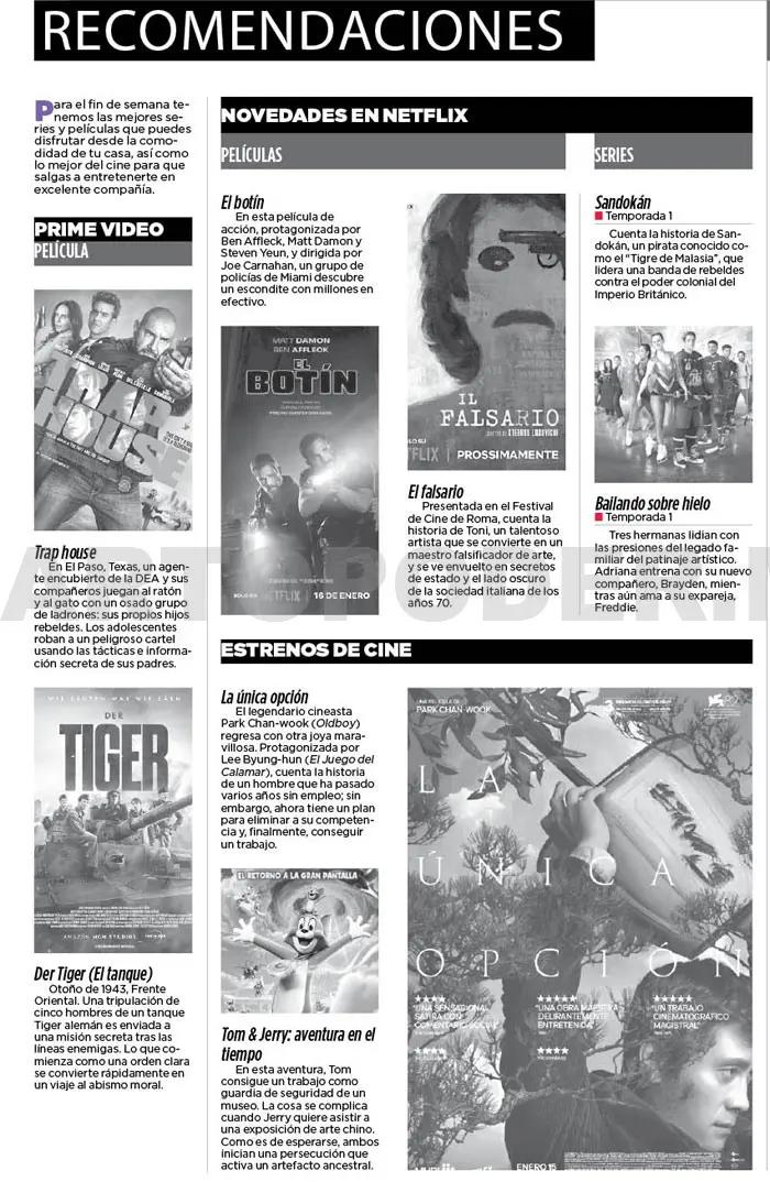 Para el fin de semana tenemos las mejores series y películas que puedes disfrutar desde la comodidad de tu casa, así como lo mejor del cine para que salgas a entretenerte en excelente compañía.