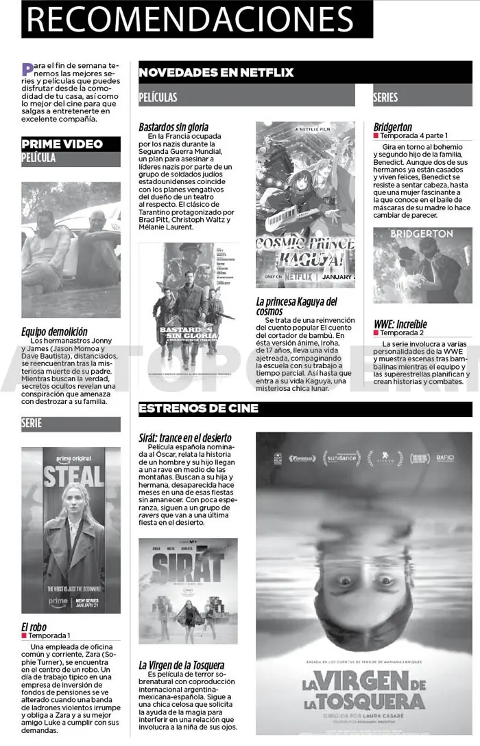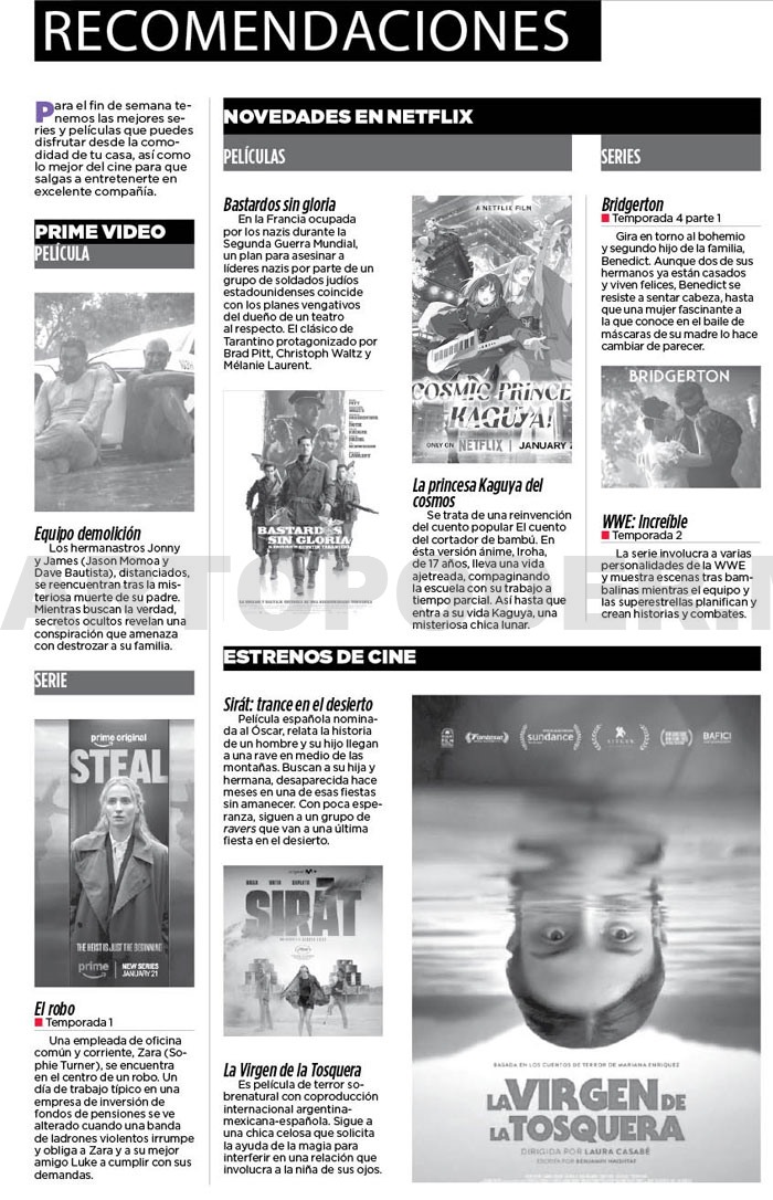 Para el fin de semana tenemos las mejores series y películas que puedes disfrutar desde la comodidad de tu casa, así como lo mejor del cine para que salgas a entretenerte en excelente compañía.