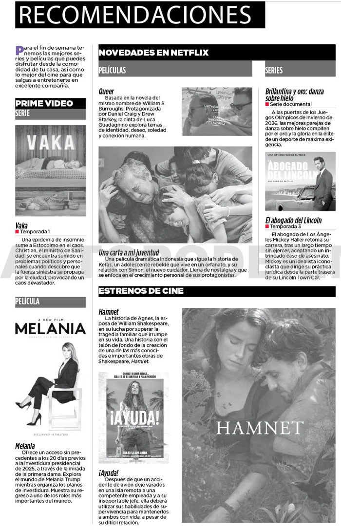 Para el fin de semana tenemos las mejores series y películas que puedes disfrutar desde la comodidad de tu casa, así como lo mejor del cine para que salgas a entretenerte en excelente compañía.