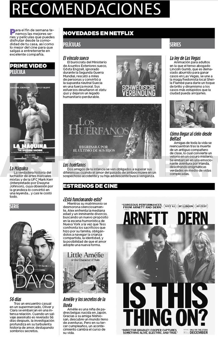 Para el fin de semana tenemos las mejores series y películas que puedes disfrutar desde la comodidad de tu casa, así como lo mejor del cine para que salgas a entretenerte en excelente compañía.