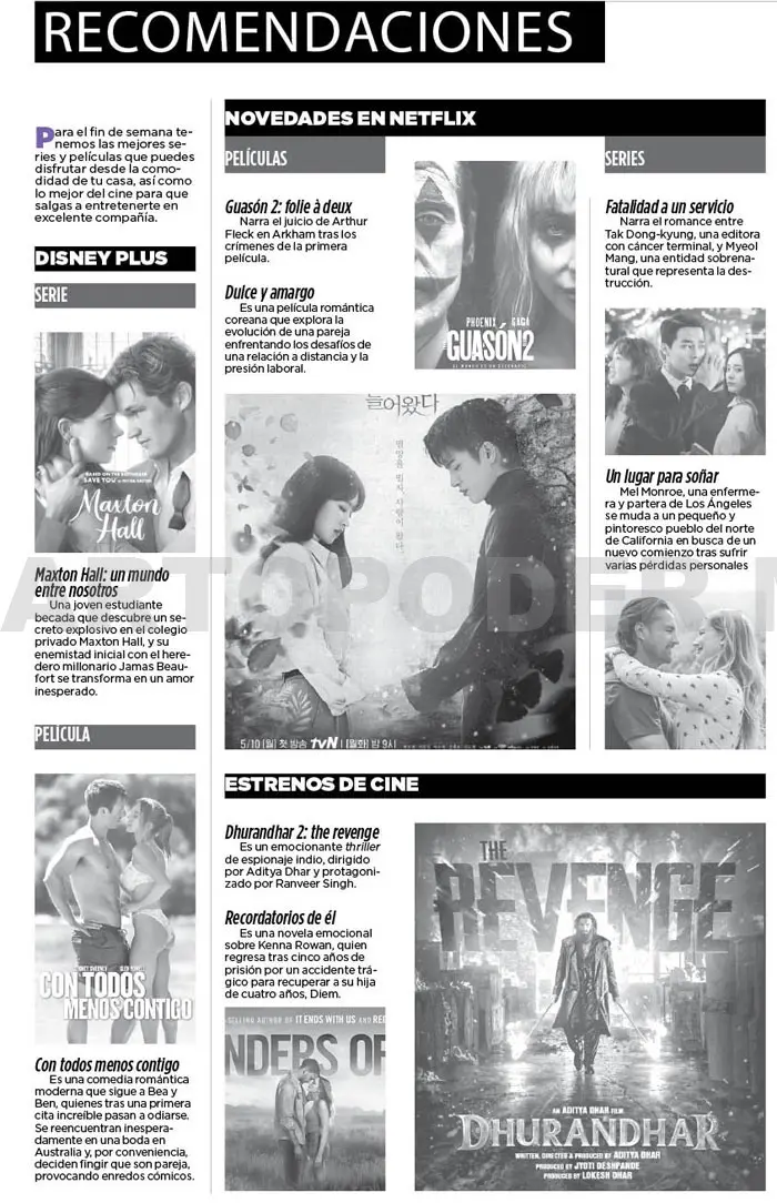 Para el fin de semana tenemos las mejores series y películas que puedes disfrutar desde la comodidad de tu casa, así como lo mejor del cine para que salgas a entretenerte en excelente compañía.
