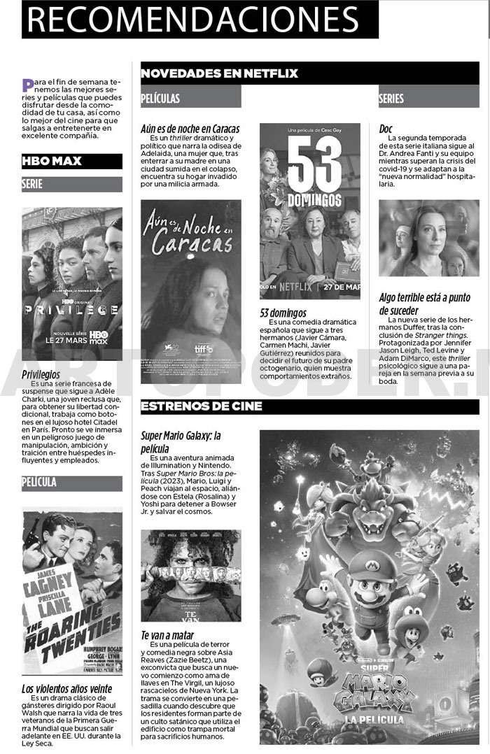 Para el fin de semana tenemos las mejores series y películas que puedes disfrutar desde la comodidad de tu casa, así como lo mejor del cine para que salgas a entretenerte en excelente compañía.