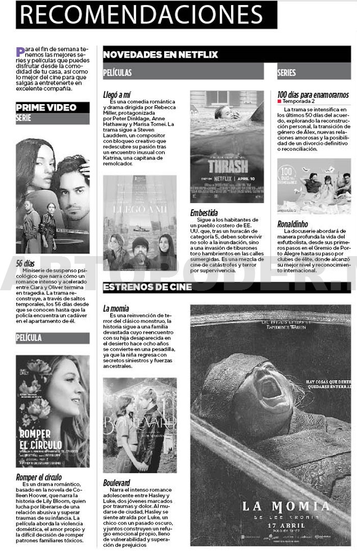 Para el fin de semana tenemos las mejores series y películas que puedes disfrutar desde la comodidad de tu casa, así como lo mejor del cine para que salgas a entretenerte en excelente compañía.