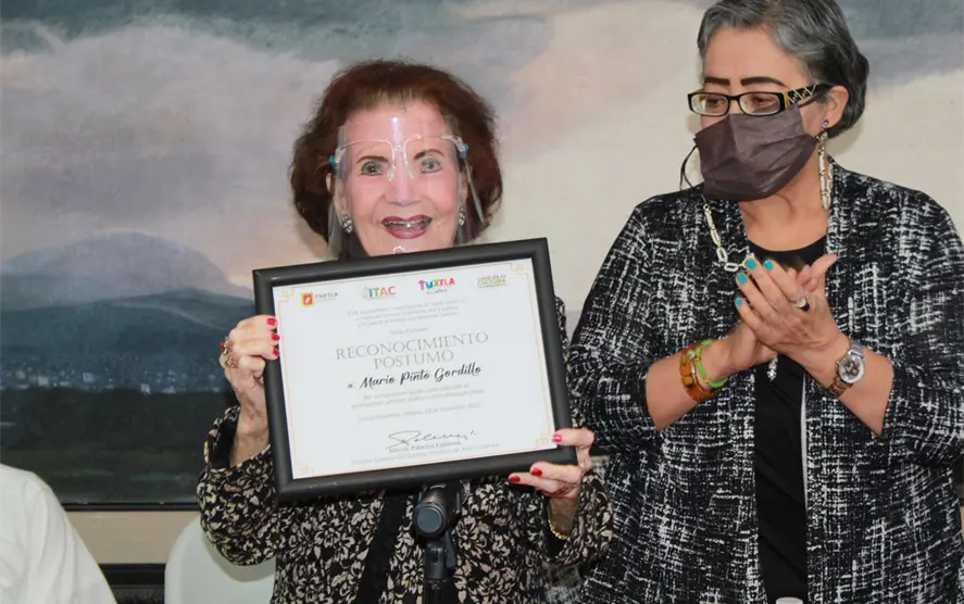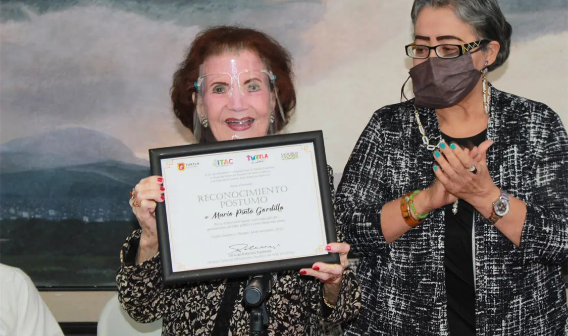Familiares del recordado maestro recibieron de manos de la directora de la casa de la cultura de esta ciudad, Socorro Trejo Sirvent, la presea en el que se lee: “El Ayuntamiento Constitucional de Tuxtla Gutiérrez, a través del Instituto Tuxtleco de Arte y Cultura y la casa de la cultura Luis Alaminos Guerrero, otorga el presente reconocimiento póstumo a Mario Pinto Gordillo, por su importante legado como educador de generaciones, servidor público y destacado poeta”.