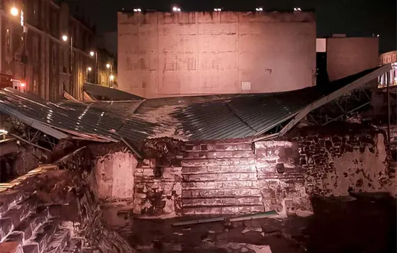 El techo de lámina colindaba con la calle Justo Sierra casi esquina con República de Argentina, y estaba encima de la Casa de las Águilas, que “es un edificio neotolteca del recinto sagrado de Tenochtitlán”, dijo el arqueólogo Leonardo López Luján, director del Proyecto Templo Mayor (PTM).