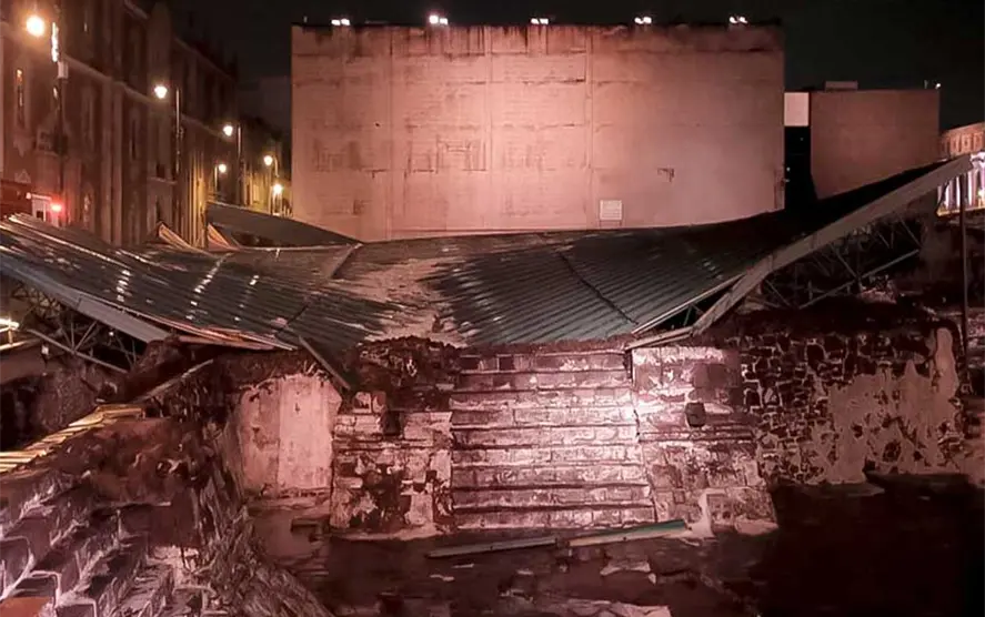 “Se trabajará en un proyecto de rediseño de cuatro cubiertas que protegen estructuras prehispánicas del Templo Mayor”, informó la Secretaría de Cultura tras el colapso de un techo a causa de la granizada del miércoles 28 de abril.