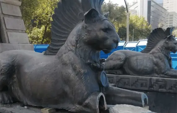 El Monumento a Cuauhtémoc, ubicado en Paseo de la Reforma y Avenida Insurgentes, contaba con ocho leopardos de bronce; sin embargo, de acuerdo con dictámenes elaborados por el Instituto Nacional de Antropología e Historia (INAH), cinco esculturas fueron dañadas en un 15 % y una en un 30 %, para su restauración se requerirán 3.5 millones de pesos, mientras que los responsables aún esperan una resolución para resolver su situación jurídica.