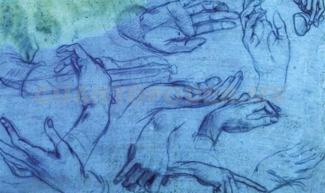 Gracias a la luz ultravioleta más de una docena de esbozos de manos dibujadas por Leonardo Da Vinci y que formaron parte del estudio preliminar del artista para pintar su obra La adoración de los magos (1481), se exhibirá al público por primera vez en la Galería de la Reina, en el Palacio de Buckingham.