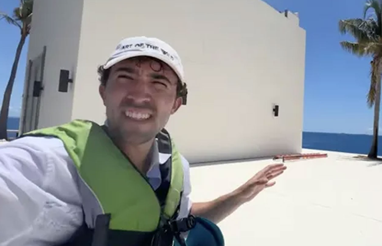 Para la sorpresa del propio creador de contenido, Oliveira logra cruzar la isla y llegar al misterioso edificio sin ser detectado por elementos de seguridad. Procede a mostrar los alrededores, donde hay algunas bancas, una zona para prender fogatas y se ven las entradas del edificio totalmente soldadas.