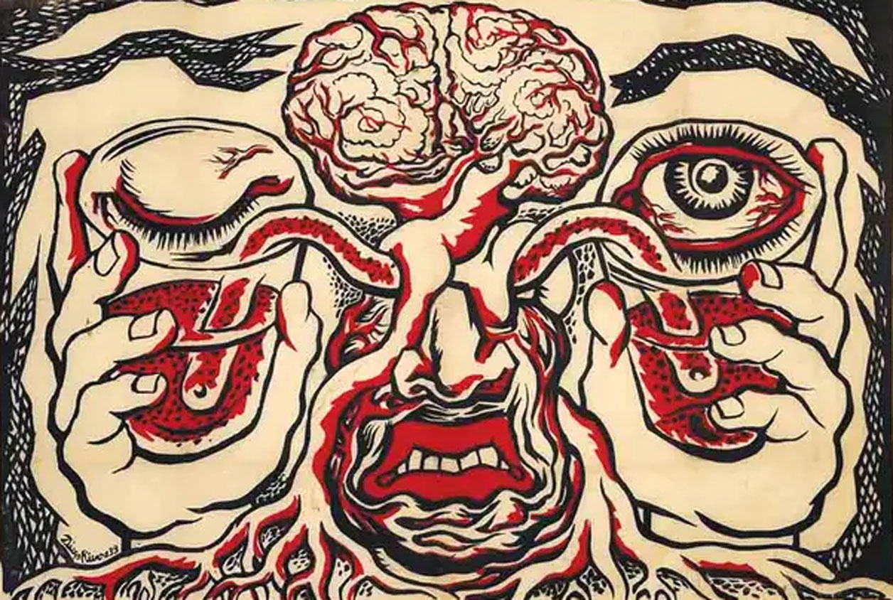 En 1938, el pintor mexicano Diego Rivera ilustró con la xilografía sobre papel Vasos comunicantes, el manifiesto por un arte revolucionario independiente, que firmó junto con el poeta francés André Breton, uno de los fundadores del surrealismo.