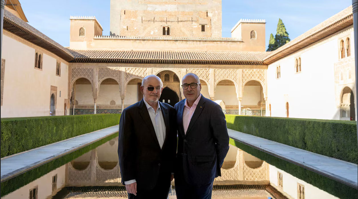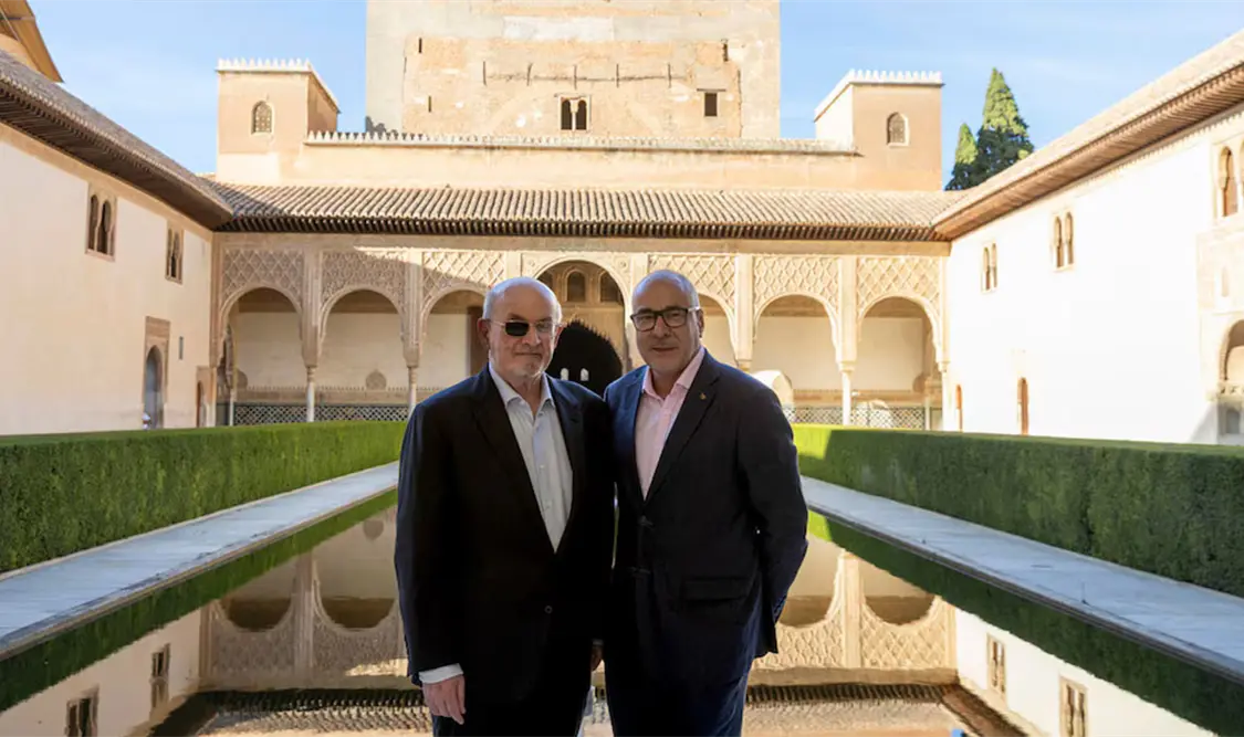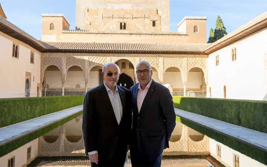 Rushdie visitó por primera vez la Alhambra a los 19 años y volvió en 1996, treinta años después, casi el mismo periodo de tiempo que ha tardado en volver. Este monumento también estuvo presente en las alucinaciones que sufrió cuando estaba ingresado en el hospital tras el ataque, según contó en su diálogo con Neuman, debido a la fuerte medicación que recibía y que le llevaba a tener visiones de edificios arquitectónicos, algunos imaginarios, construidos con alfabetos.