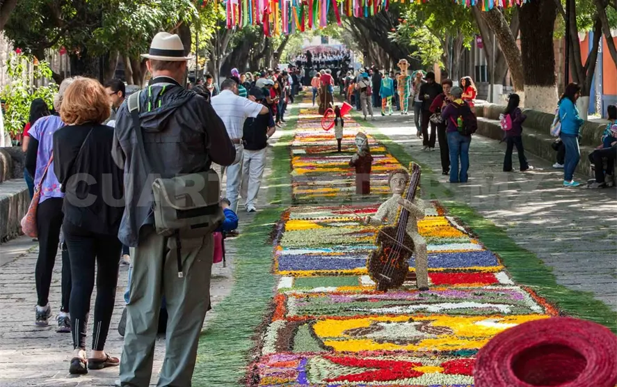 Colores, aromas, texturas, formas, incluso sabores en un abanico de manufactura preciosa es lo que el paseante percibe al deambular por esa avenida de añeja fama en la capital de Michoacán. Durante 14 años consecutivos, los tapetes están presentes en este festival, y cada año, con una nueva propuesta. Este 2017 el eje temático es #Todos somos música.