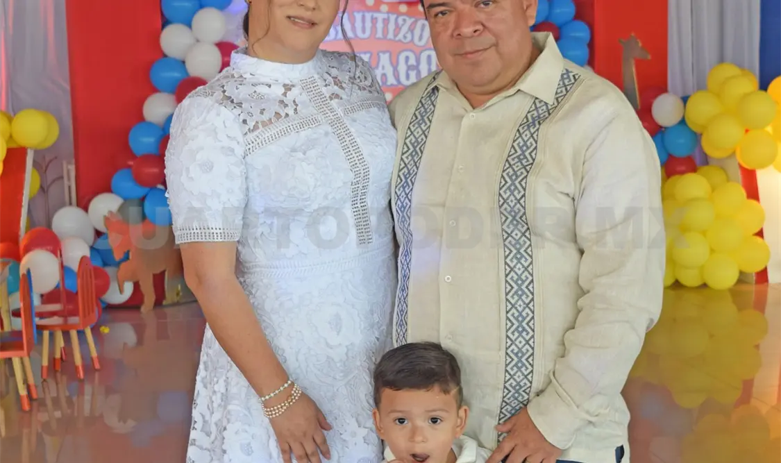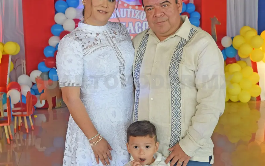 El pequeño Santiago recibió el sacramento del bautizo en una emotiva ceremonia, acompañado de sus padres Mónica del Carmen y Milton. La celebración reunió a familiares y amigos, quienes fueron testigos de este momento especial y compartieron su alegría en un cálido festejo posterior. ¡Felicidades a la familia!