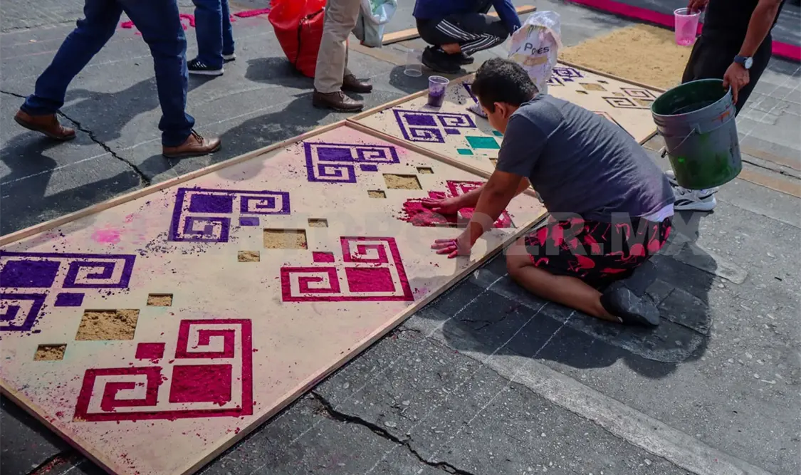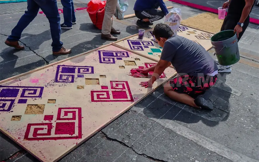 Agregó que el tapete no solo representa el inicio del desfile, sino también la riqueza de las tradiciones que dan vida al Festival El Mequé.