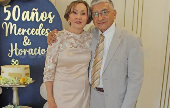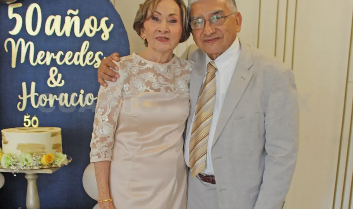 Mercedes y Horacio brindaron de nuevo por el amor al celebrar sus bodas de oro. Todos sus familiares acudieron para felicitarlos con gran emoción y llenarlos de bendiciones. La pareja, muy contenta y agradecida, ofreció un delicioso banquete. ¡Enhorabuena!