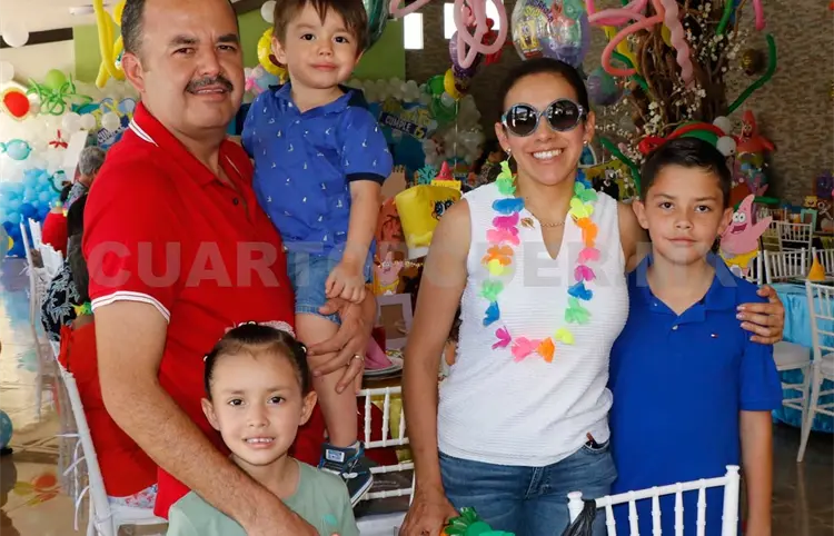 Los hermanitos Memito y Max cumplieron 6 y 1 año de edad, por lo que sus papás los festejaron en grande. Los pequeños eligieron la temática de su caricatura favorita, Bob Esponja, por lo cual todos los detalles estuvieron muy ad hoc con la ambientación, desde la mesa de postres hasta el set de fotos, y por su puesto no podía faltar la alberca. Después de juegos, fotos y mucha diversión, los pequeños rompieron las piñatas y partieron el pastel. ¡Muchas felicidades!