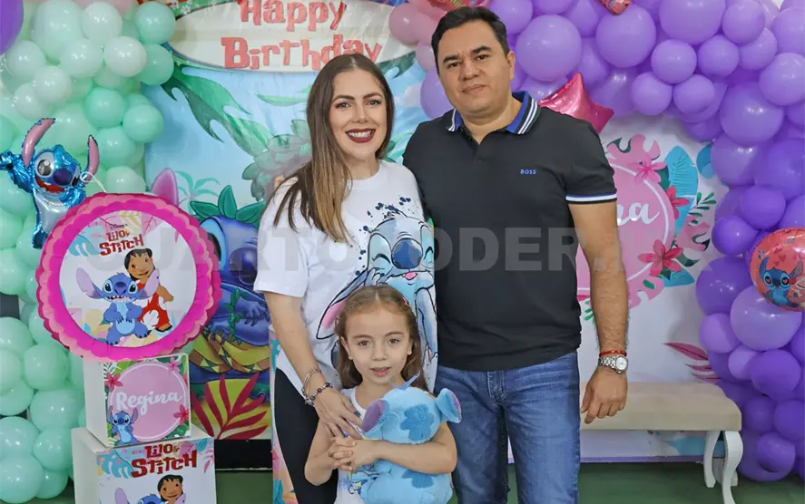 Los papás de la pequeña Regina decidieron festejar con mucho amor sus seis años de edad con la temática de su película favorita Lilo y Stitch. Al lugar acudieron sus mejores amigos y familiares quienes la recibieron con abrazos y lindos regalos, para después disfrutar de los juegos, las piñatas y el delicioso pastel. ¡Muchas felicidades!