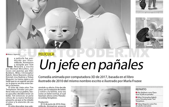 La película fue producida por DreamWorks Animation y dirigida por Tom McGrath y escrita por Michael McCullers. Las voces son puestas por Alec Baldwin, Miles Christopher Bakshi, Steve Buscemi, Jimmy Kimmel, Lisa Kudrow y Tobey Maguire. La trama sigue a un bebé que es un agente secreto en la guerra secreta entre bebés y cachorros.