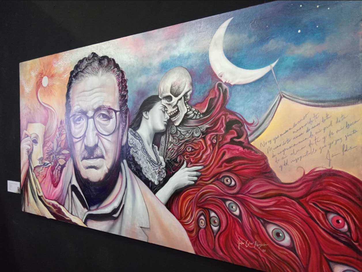 La muestra, añadió, reúne a 61 artistas visuales cuyas obras, incluyendo pintura, gráfica, fotografía, escultura y lenguajes mixtos, “establecen un diálogo contemporáneo con el universo sabiniano. Lejos de ilustrar literalmente sus poemas, las piezas presentadas exploran resonancias, tensiones y correspondencias entre imagen y palabra. Cada propuesta constituye una interpretación sensible que expande la dimensión simbólica de su legado y lo sitúa en el presente”.
