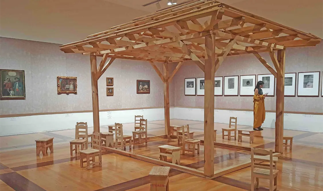 En la constelación sobre lo colonial, el curador de la muestra explica que aborda lo que en su momento se pensaron que eran “las reglas del juego” y se cuestionan con un diálogo entre pinturas de castas en préstamo y la instalación Nint’ani. Volver a casa, del creador purépecha Salvador Xharicata. Ahí también se exhibe por primera vez como parte de la colección, La Conquista, de José Clemente Orozco, y reaparece ante el público Los nuevos catecismos, de Francisco Toledo.