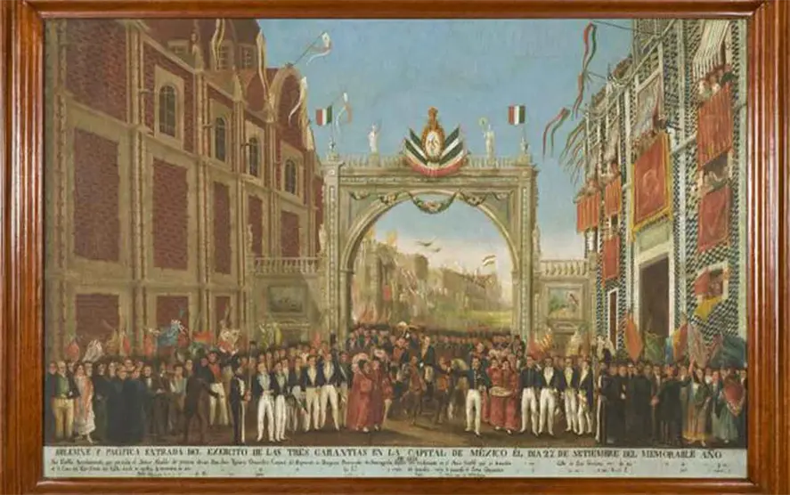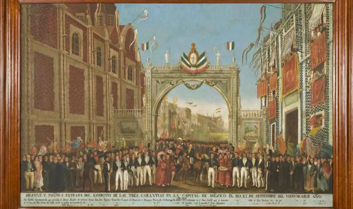 El Banco de México (Banxico) retomó el óleo anónimo de 1822 que exalta la hazaña del Ejército Trigarante, encabezado por el coronel Agustín de Iturbide, y que, de acuerdo con esta obra del siglo XIX, era esperado por hombres y mujeres que llevaban consigo los colores de la bandera.
